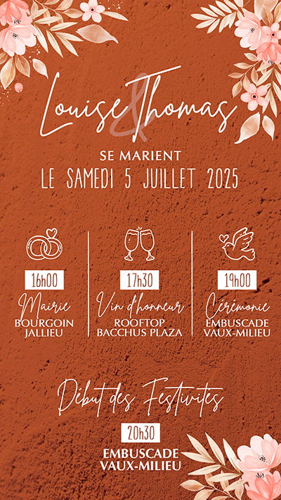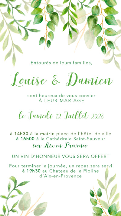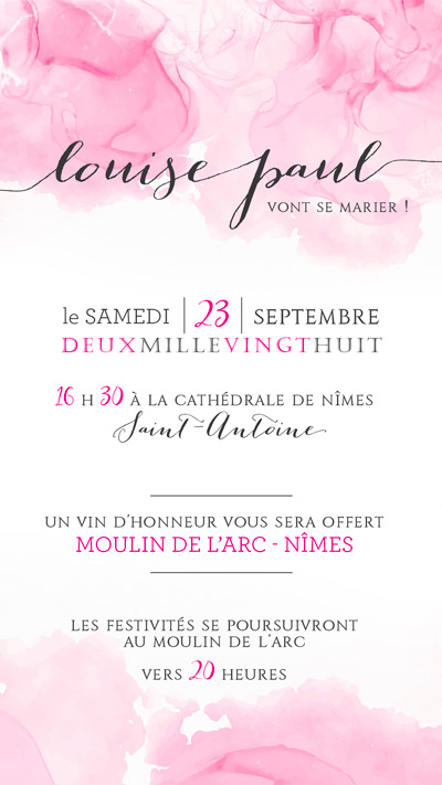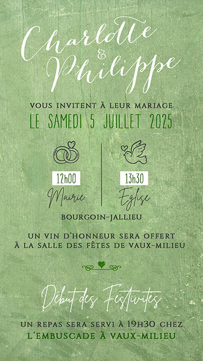 Le mariage est un moment précieux dans la vie d’un couple. Choisissez un faire-part de mariage numérique, élégant, pratique et écologique. De nombreux thèmes vous attendent… y compris en version animée pour éblouir vos invités.
